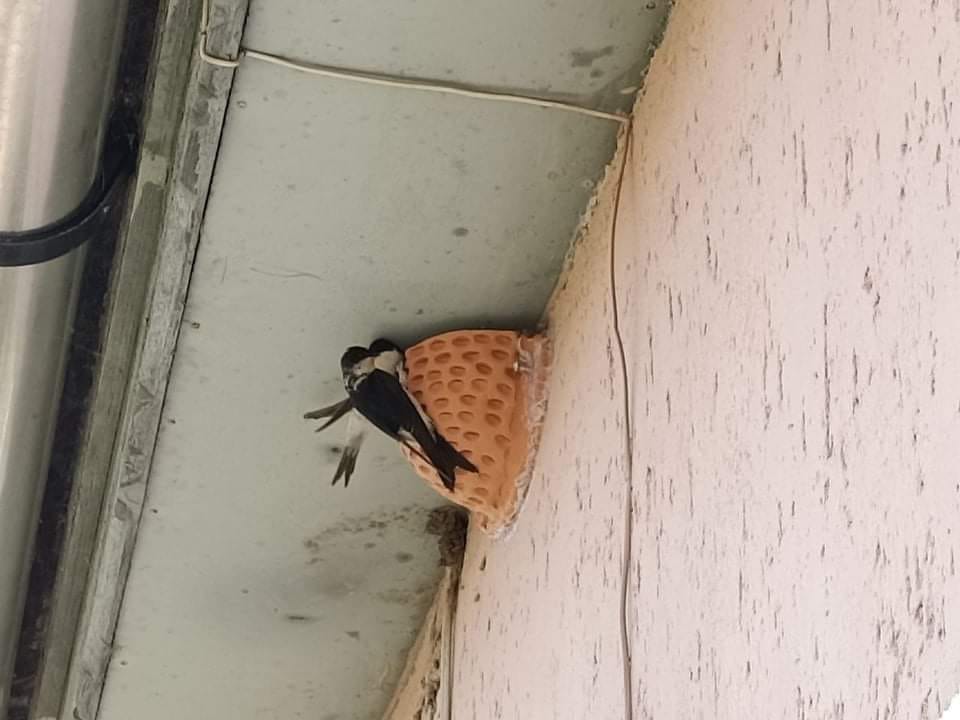 A képen bal oldalt füsti fészkek, jobb oldalt a molnár fecskének való fészkek láthatóak. A különbség, hogy a molnárfecske fészkén U alakú bejárat található.